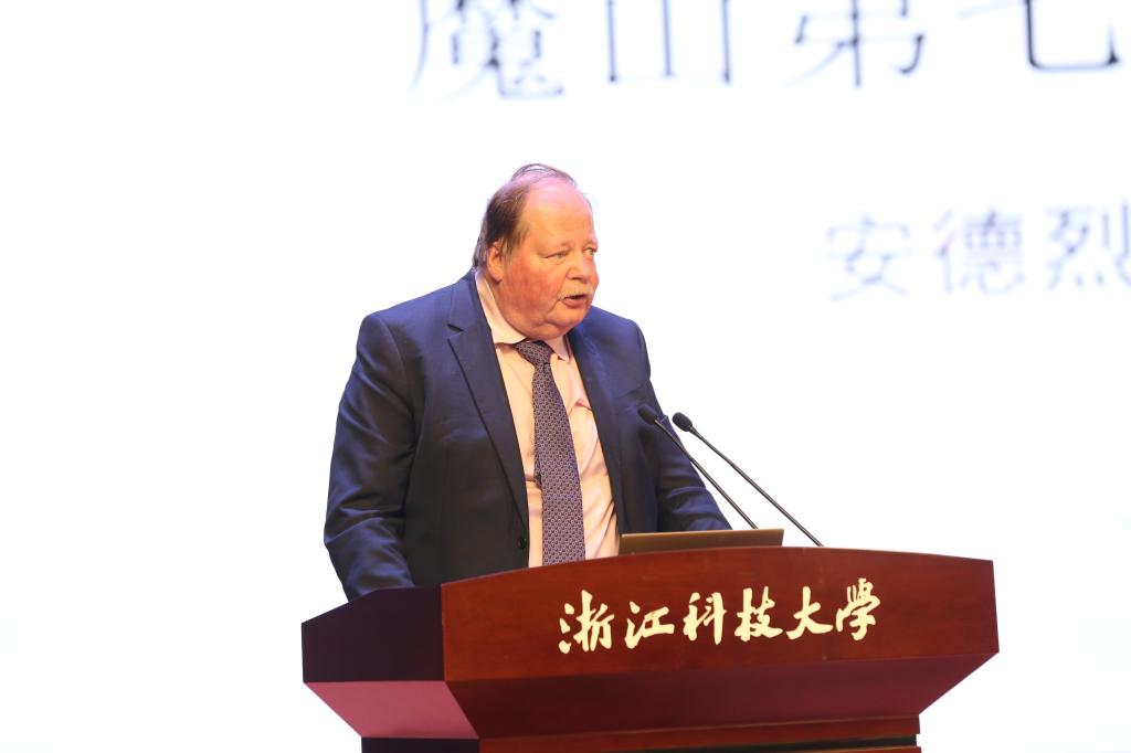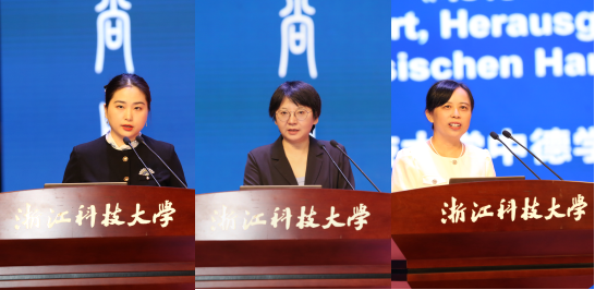 尤利娅·西格米勒在致辞中代表与会德国高校对浙江科技大学中德合作40周年表示祝贺。面对全球技术变革与工业发展挑战,她强调高校应超越传统知识传授,注重学生跨学科素养与终身学习能力的培养,期待深化中德合作,共同推动工业文明互鉴与高等教育创新。