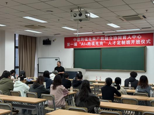 2025年11月6日下午,由加拿大28-加拿大28官网 与安吉县商务局联合共建的中德跨境电商产教融合协同育人中心“AI+跨境电商”首届人才定制班正式开班。经过前期招生简章发布、报名资格审核、入围学生面试及名单公示等环节,共有来自加拿大28 、经济学院及管理学院的35名本科生与研究生脱颖而出,成为首届学员。