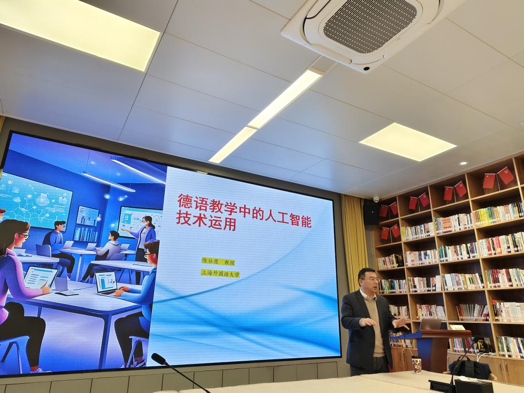 报告结束后,陈教授和各位师生进行了热情的互动,特别是对于人工智能新时代中德语专业的潜力和价值进行了深入的交流。陈教授鼓励教师在教学形式和方法上进行思考和创新,报告开拓了学院教师的教学研究视野。